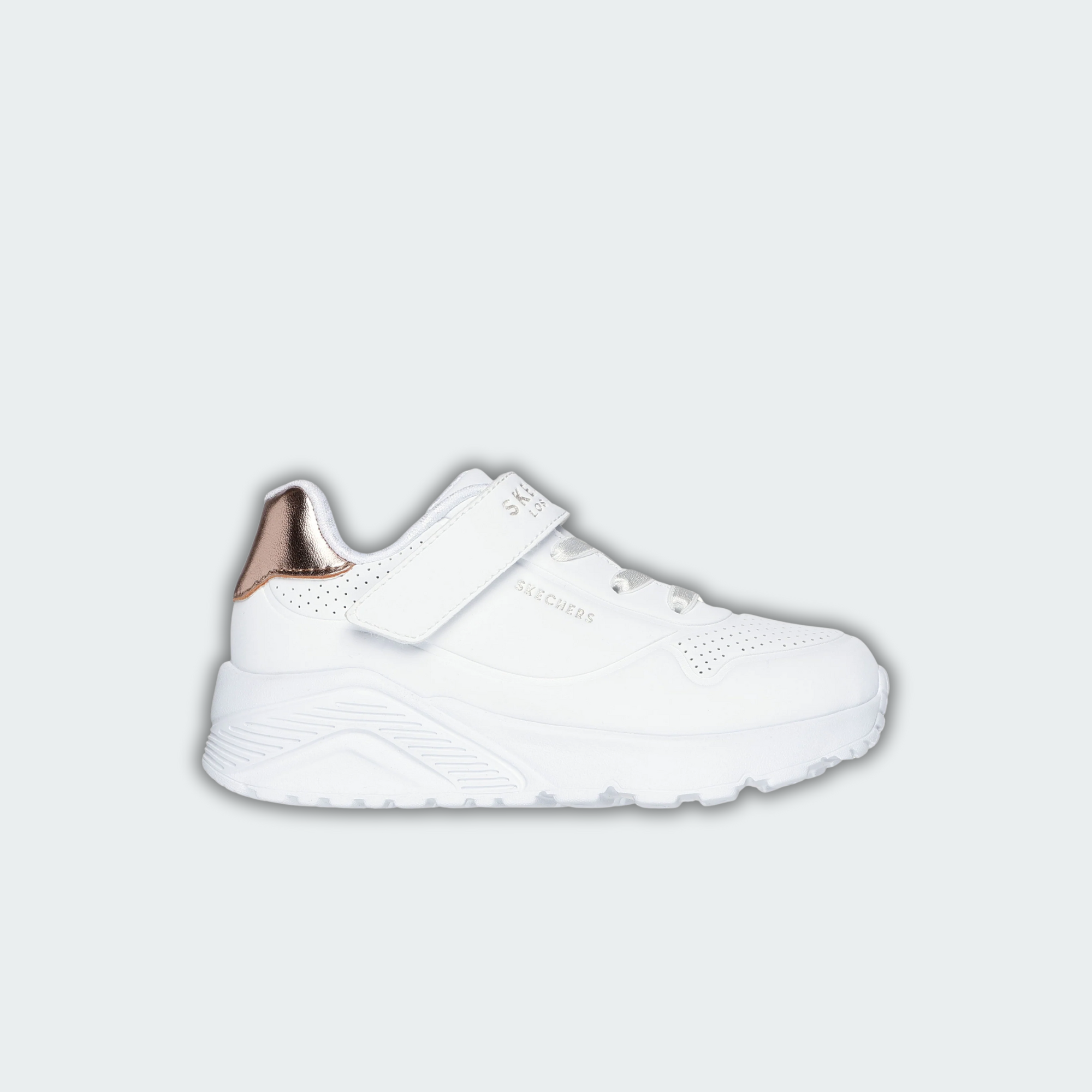 נעלי סניקרס אופנתיות לתינוקות מבית Skechers Street™ בדגם UNO Lite - Precious Shimmer. הדגם משלב עיצוב ספורטיבי קלאסי עם נוחות יומיומית וכולל גפה חלקה מחומר דורבוק...