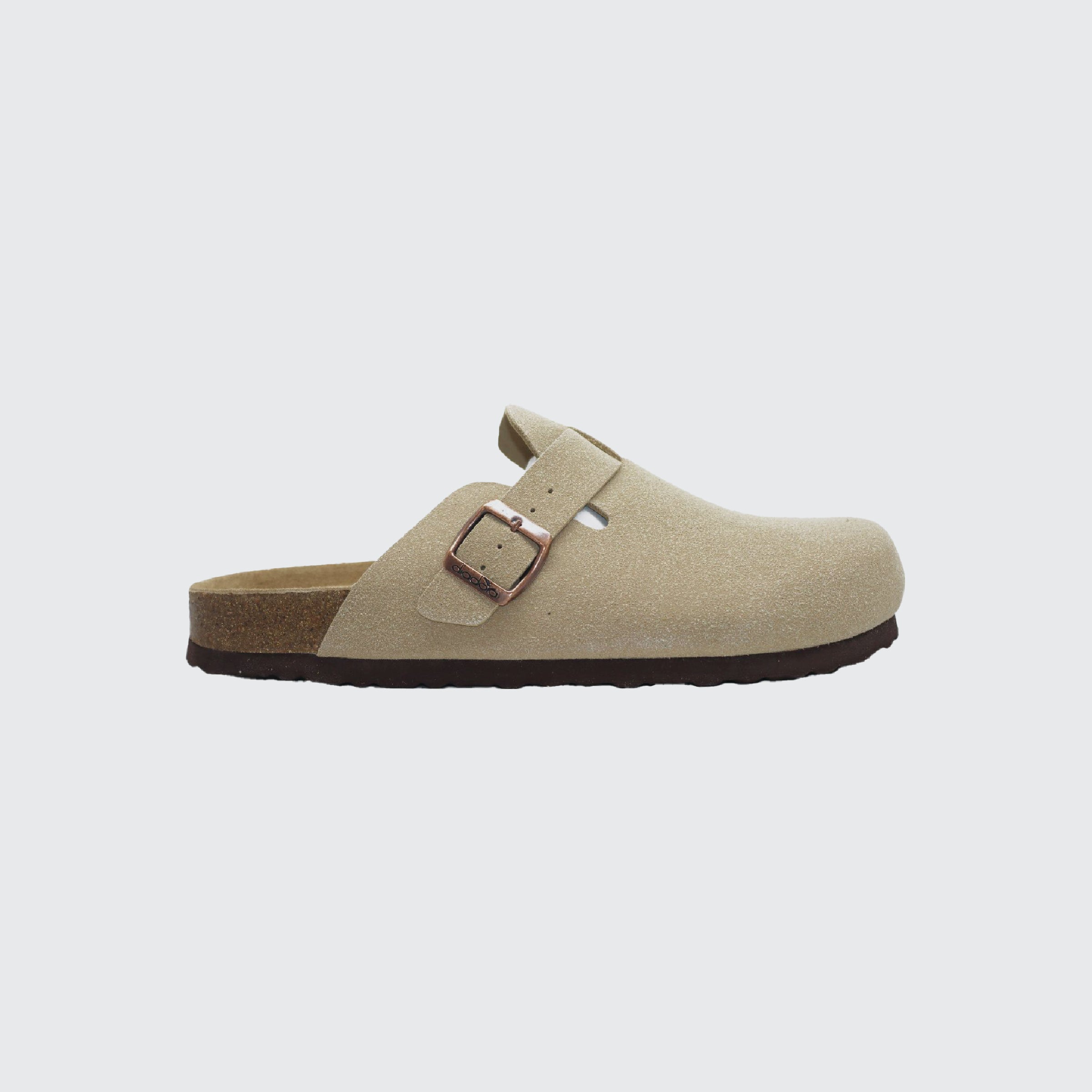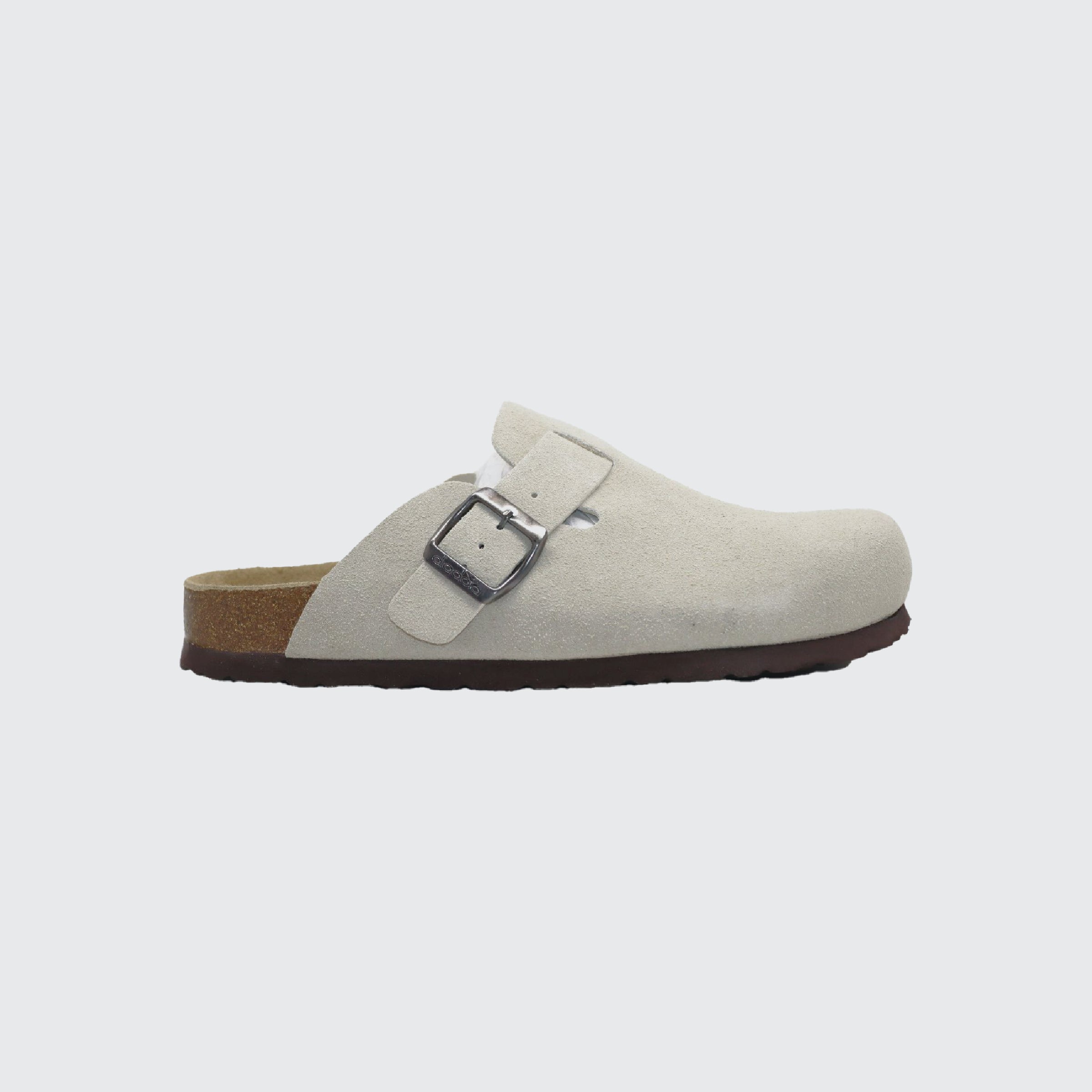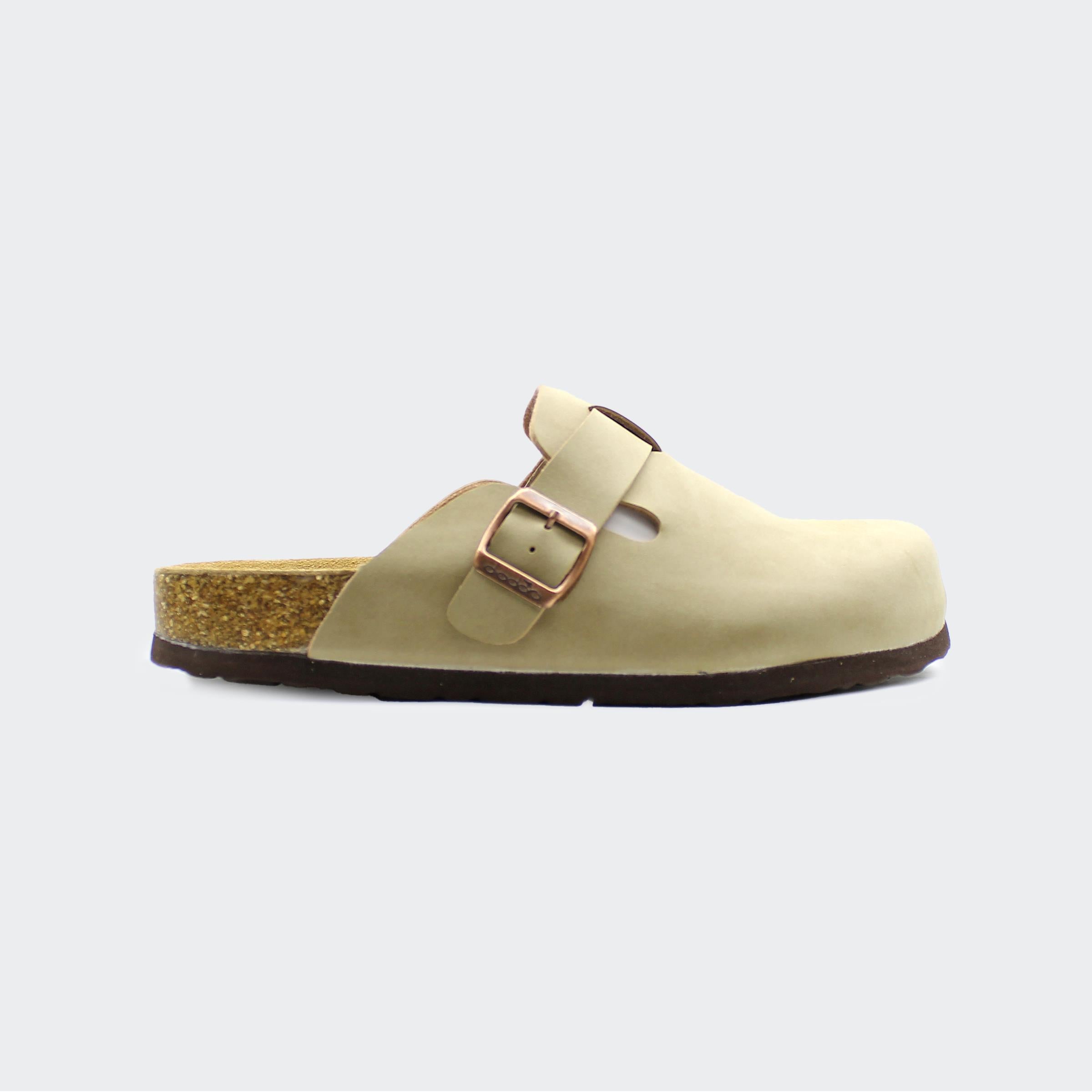 כפכפי נשים דגם מרלין של דיאדורה. הנעל סגורה בחלק הקדמי עם אבזם לשינוי הגודל. הסוליה עשויה שעם בשילוב גומי. הנעל בצבע אבן