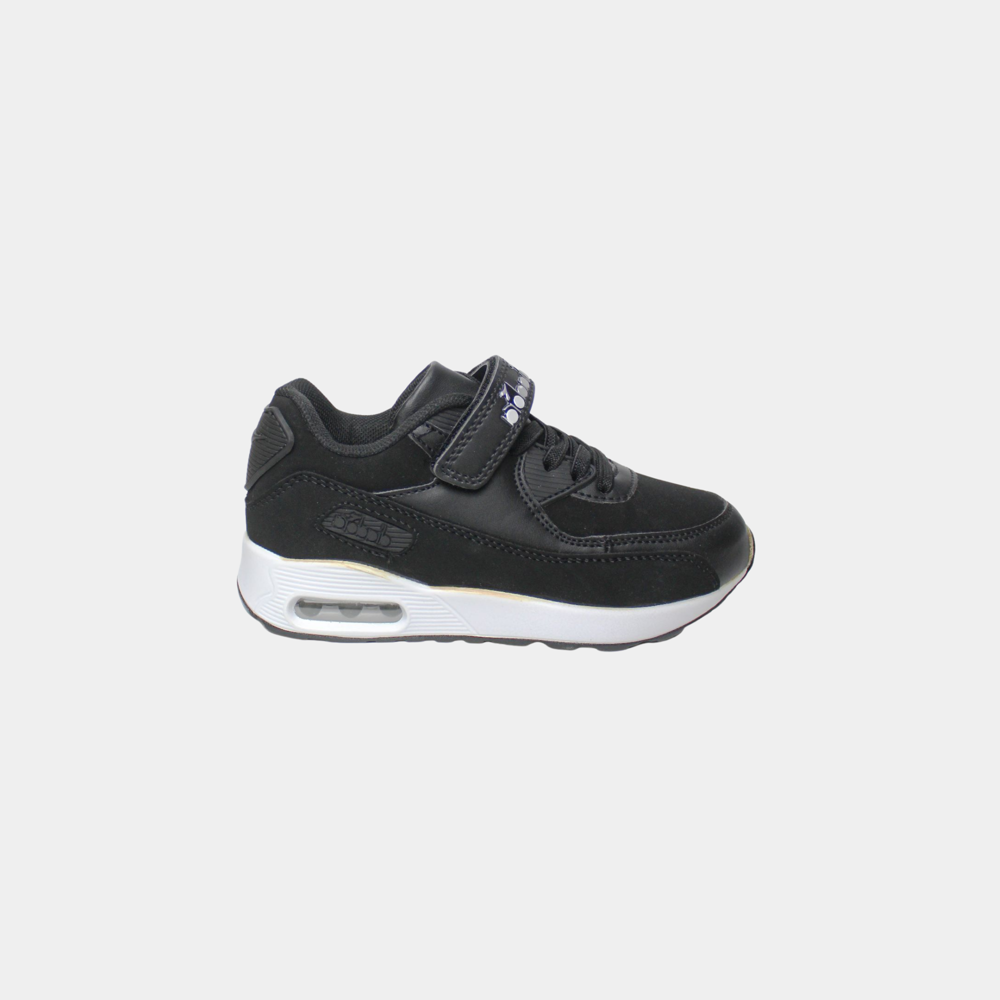 נעל ספורט שחורה לתינוקות מבית Diadora, עם סוליית אוויר רכה, סגירת ולק נוחה ושרוכים אלסטיים למראה ספורטיבי ועכשווי. מושלמת ליום יום – גם לגן, גם לטיולים....
