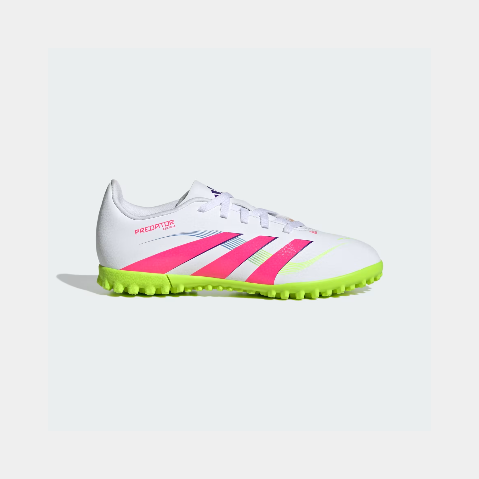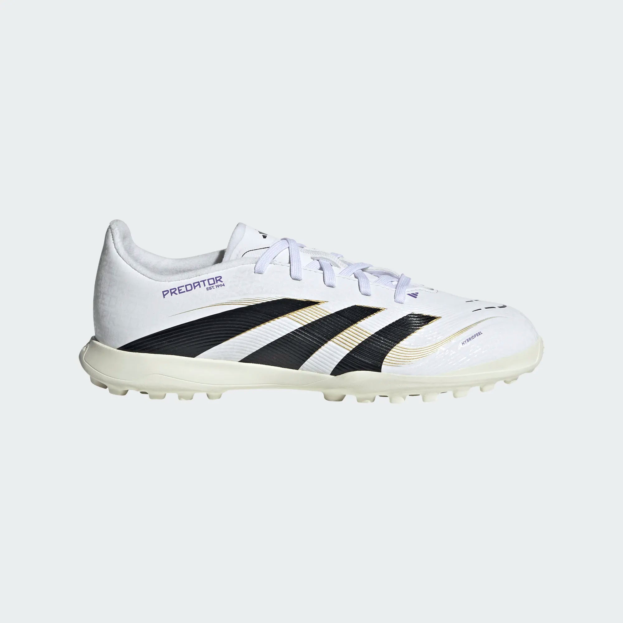 נעלי קטרגל לילדים שעוצבו לבעיטות מדויקות על מגרשי דשא סינתטי. דגם Predator של adidas כולל גפת Hybridfeel עם טקסטורה תלת־ממדית מלאה ובליטות Strikescale אחיזתיות לשליטה משופרת...