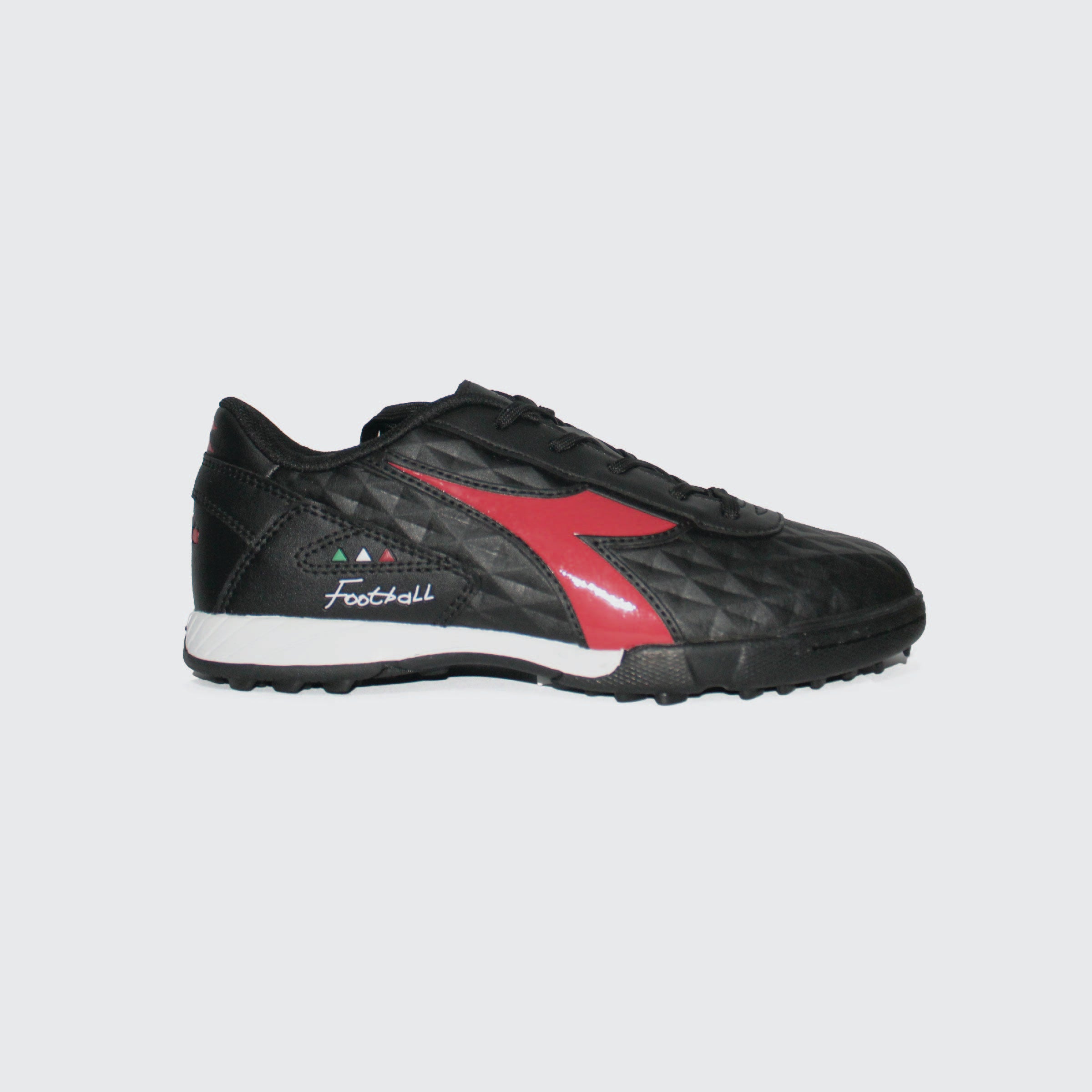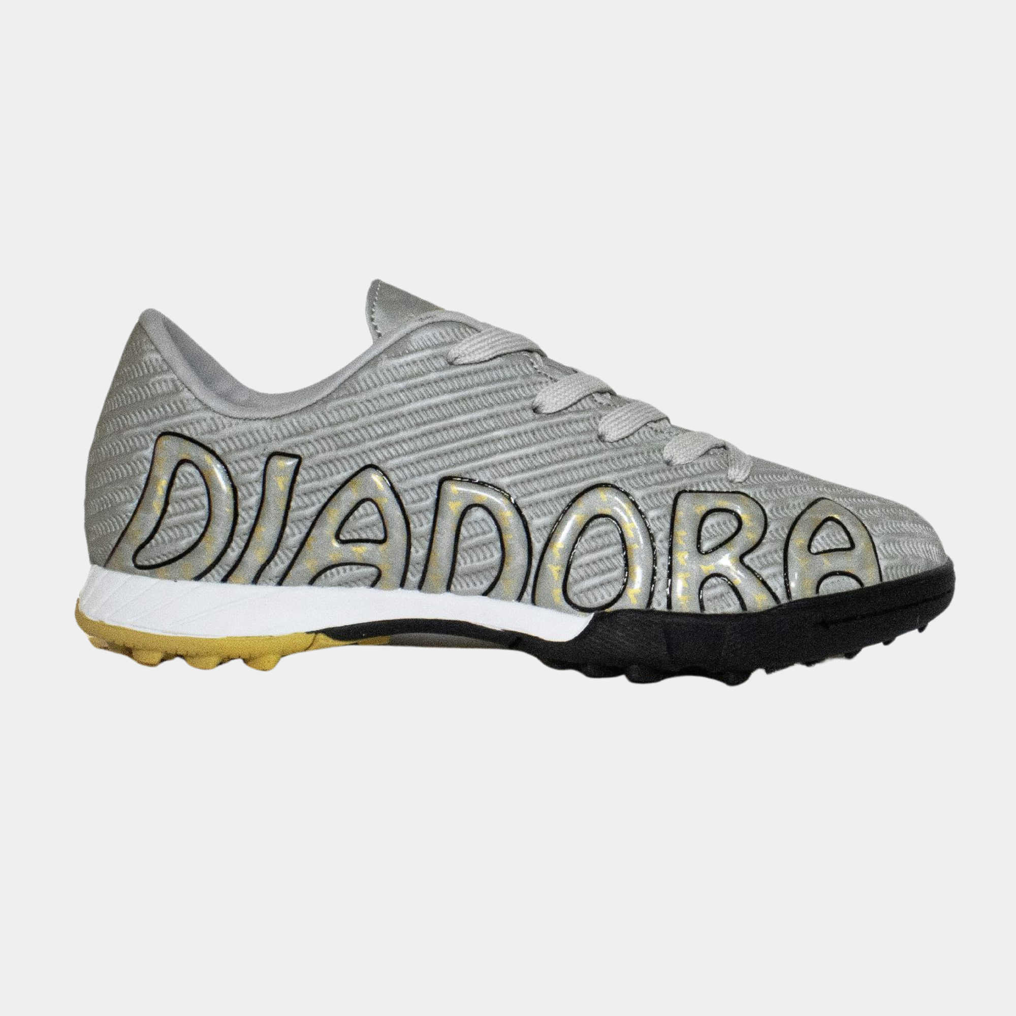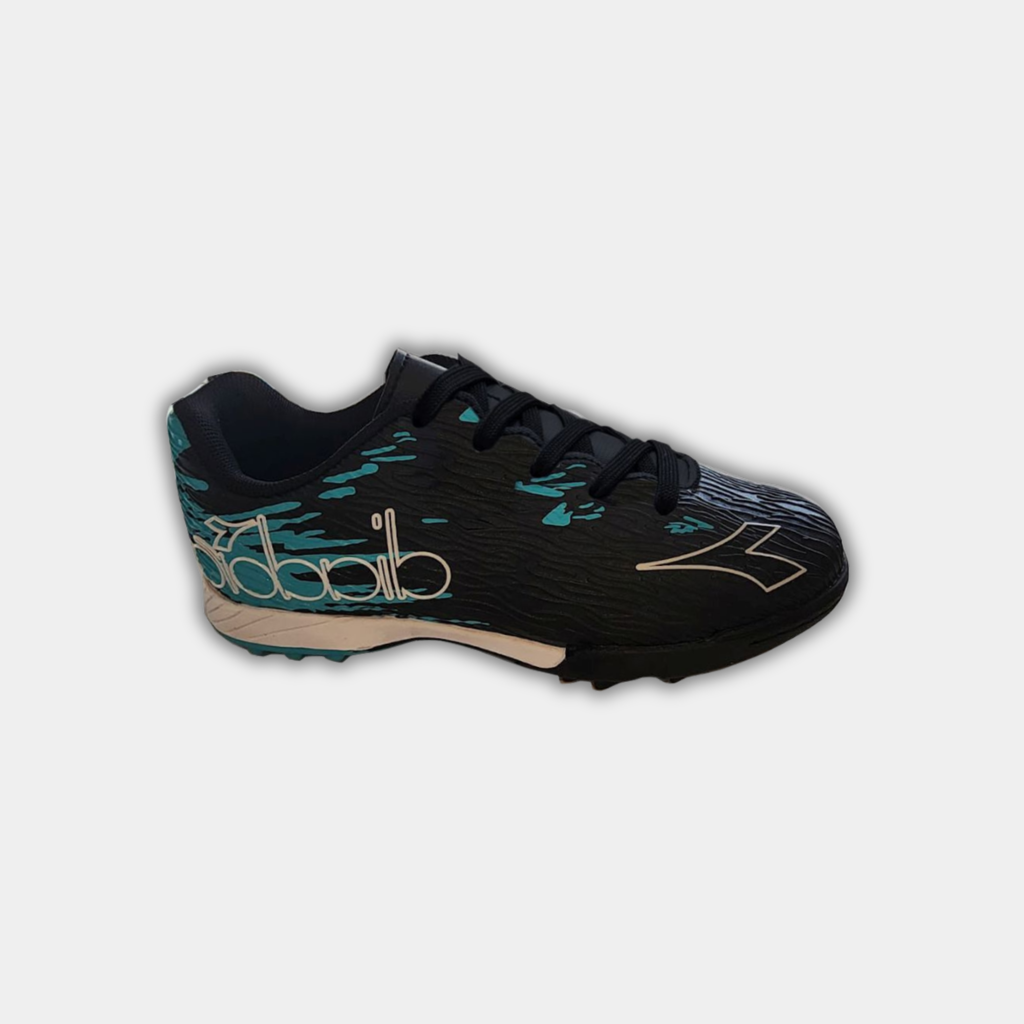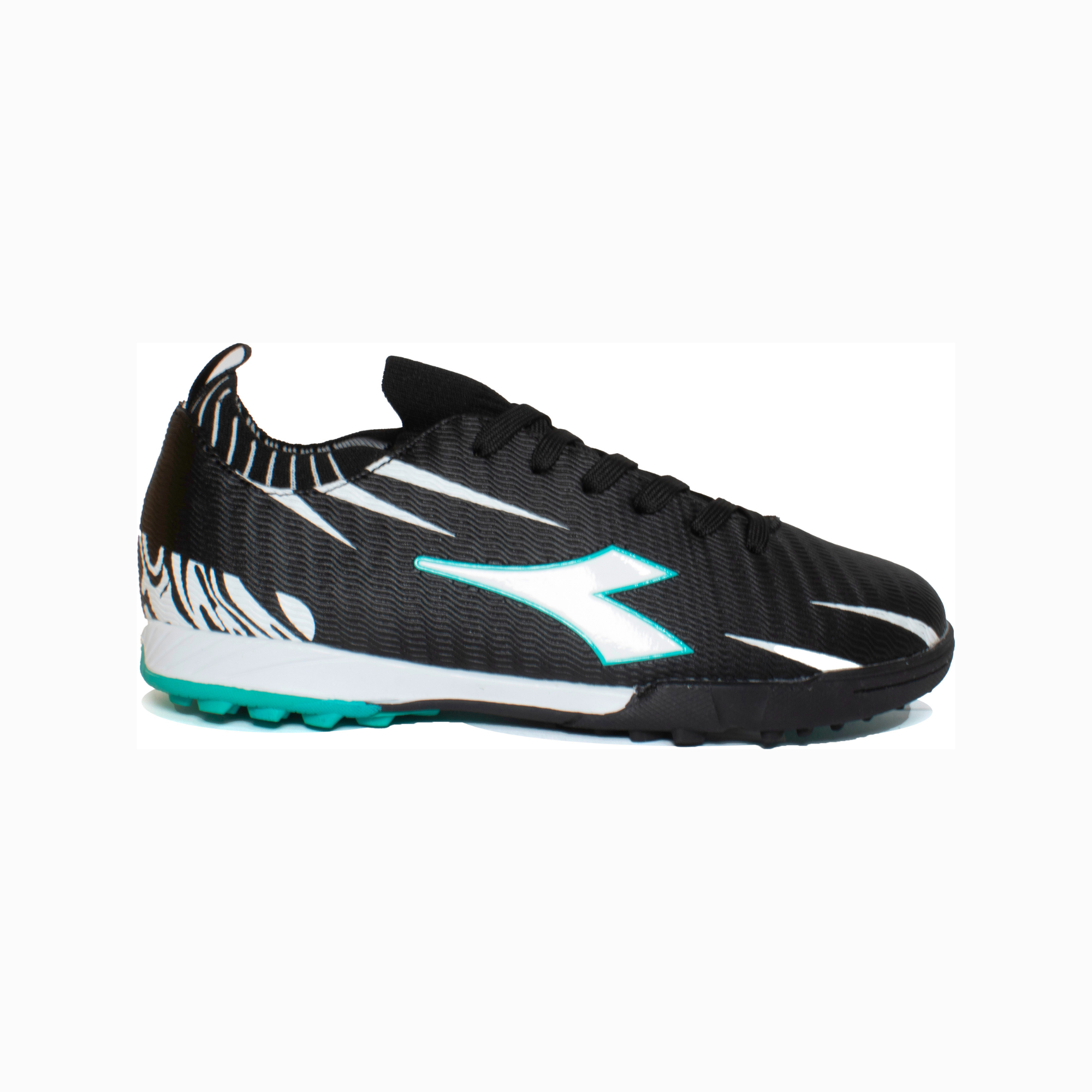 נעלי קט־רגל מקצועיות לילדים מבית דיאדורה, עם עיצוב ספורטיבי ודינמי בגווני שחור, טורקיז ולבן. הדגם כולל סוליית TF (טורף) שמספקת אחיזה מצוינת על משטחי דשא...