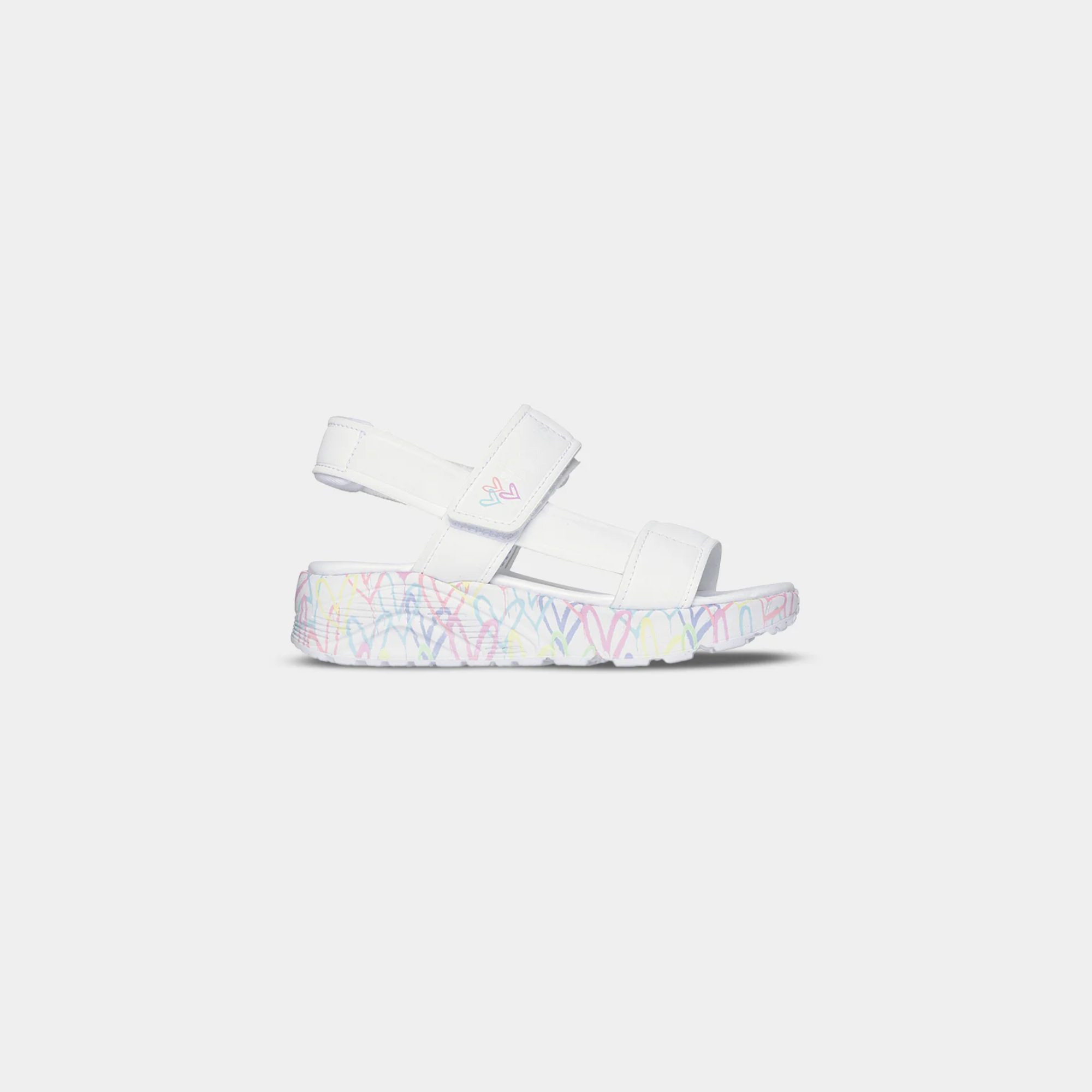 סנדלי UNO בעיטור לבבות בעלות עקב מוגבה לילדים, עם רצועת סקוץ מתכווננת ותמיכה לקרסול.