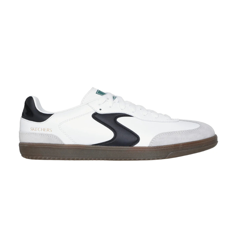נעל סניקרס של סקצ'רס (Skechers) מדגם HOTSHOT בעלת גפה המשלבת עור סינתטי עם חיזוקי זמש (Suede) בחלק הקדמי ובעקב וסגירת שרוכים. הנעל מצוידת בסוליית גומי שטוחה (Gum...