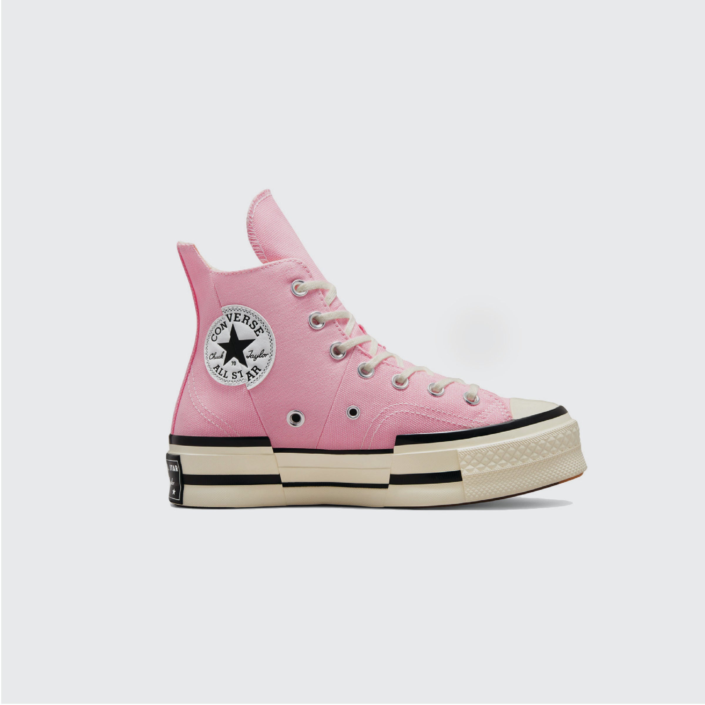 נעלי אולסטאר נשים CHUCK 70 PLUS של קונברס. הנעל האייקונית עשויה בד קנבס מעוצב בשילוב לוגו המותג בצידי הנעל ושרוכי קשירה, סוליית פלטפורמה עשויה גומי מעוצבת.