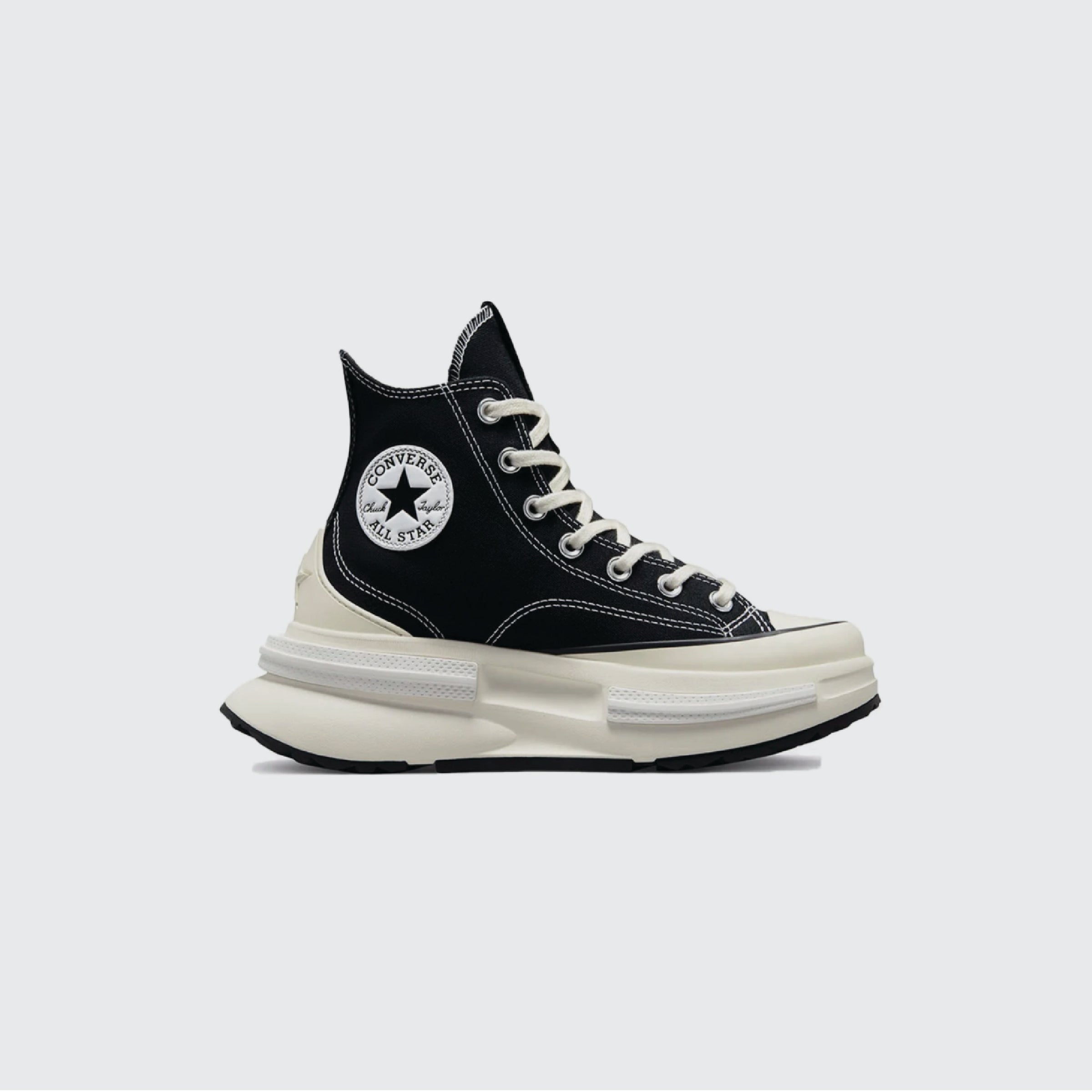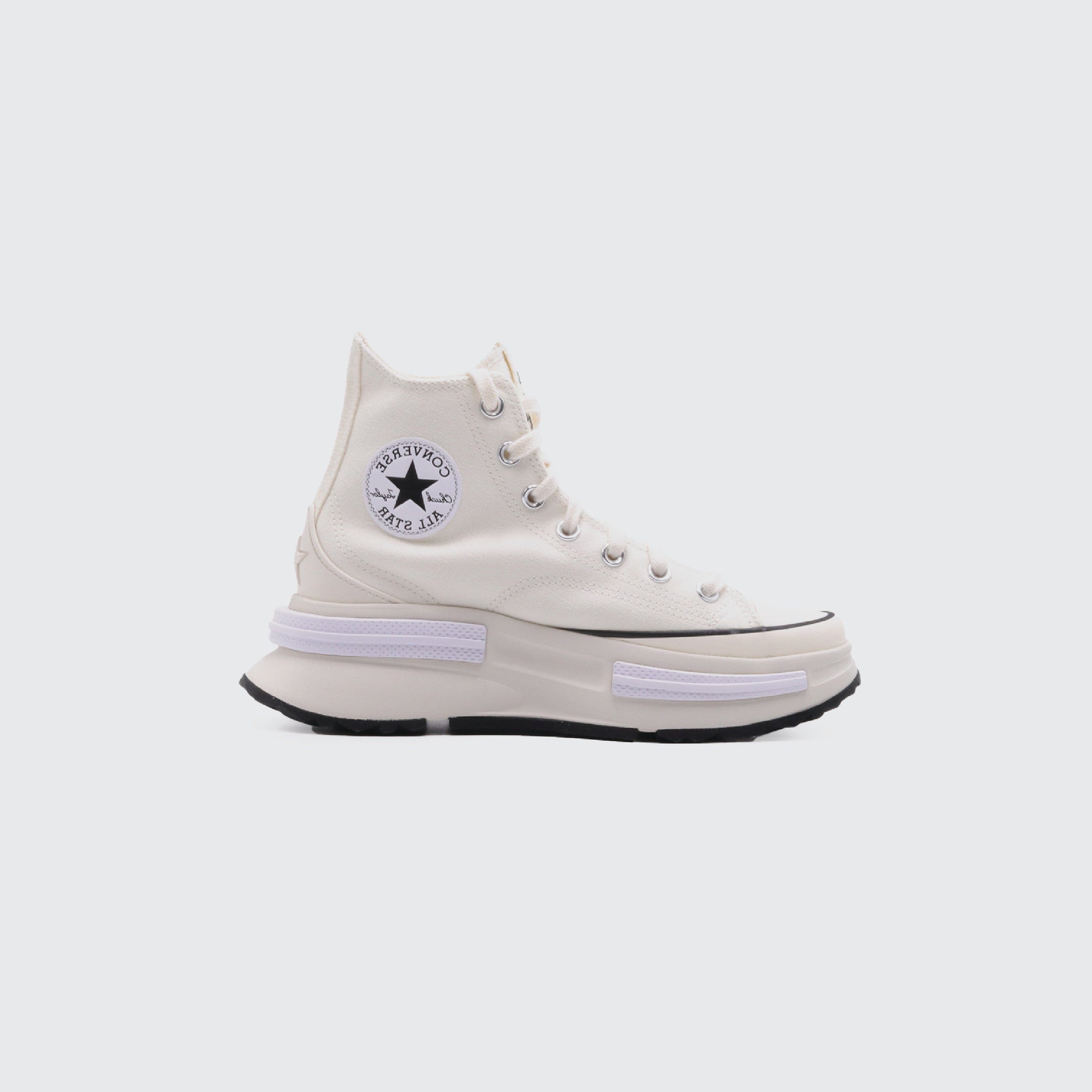 נעלי אולסטאר נשים RUN STAR LEGACY של קונברס. הנעל האייקונית עשויה בד קנבס מעוצב בשילוב לוגו המותג בצידי הנעל ושרוכי קשירה, סוליית פלטפורמה עשויה גומי ומעוצבת.